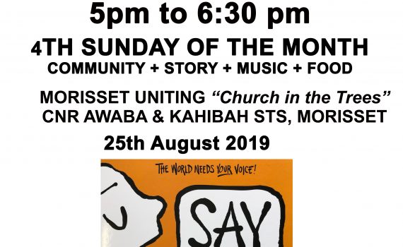 An intergenerational gathering for all ages focused on children, youth & families exploring how we live out our hope of serving those in need and growing our Christian faith and community!!! August 2019 5pm to 6.30pm includes theme “SAY SOMETHING”, groups, fun, music and a simple shared meal!! ALL WELCOME…