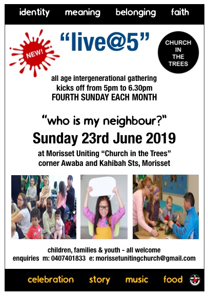 Our intergenerational all age event 5pm to 6.30pm 4th Sundays of the month!! Here we are in November, gathering on the 24th for an activity, story sharing, celebration, plus a meal together!! we will explore the story of Jesus, God become ‘one of us’ and celebrate 2019!! ALL WELCOME!! ...